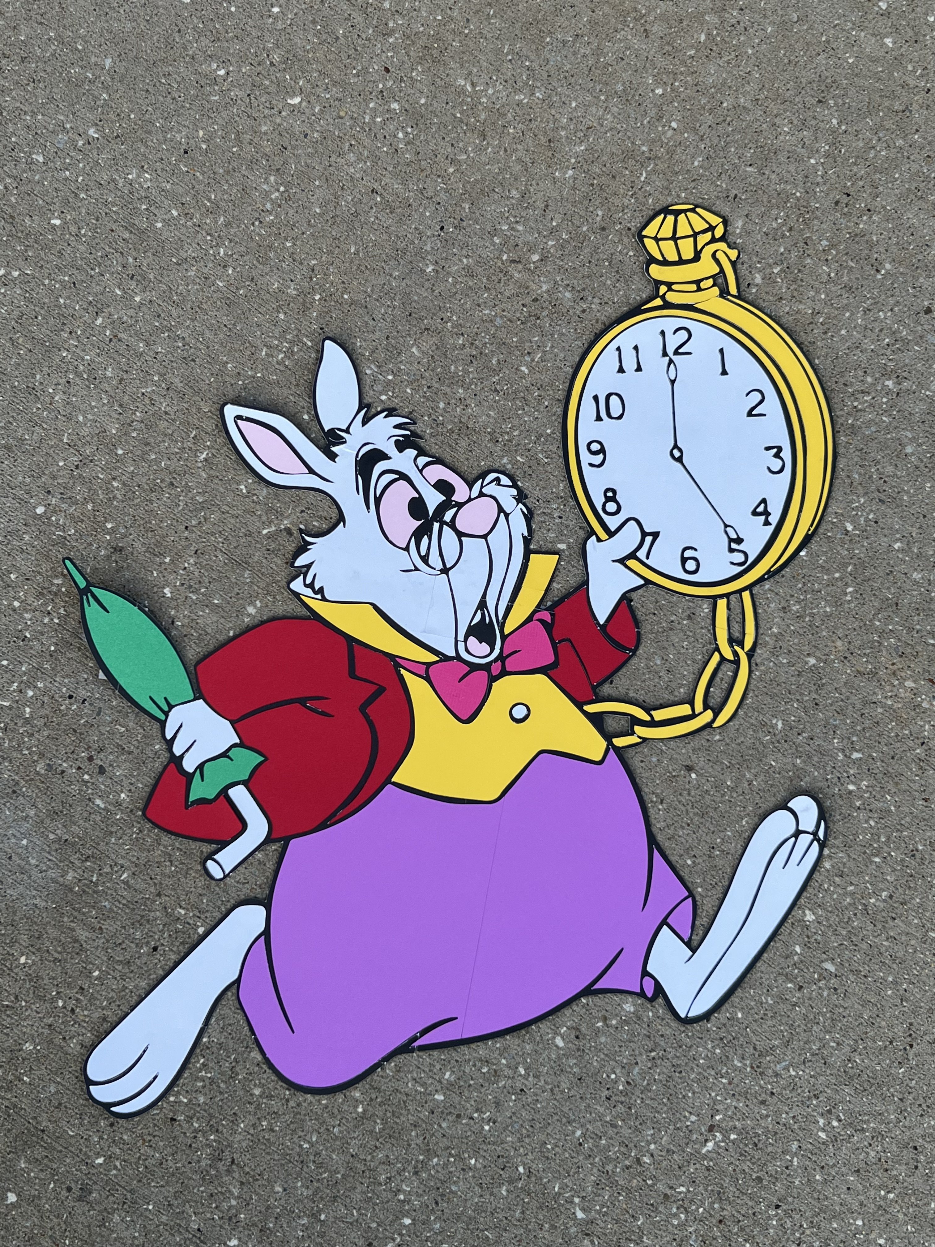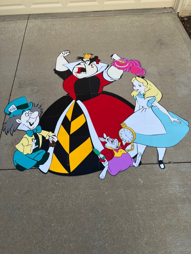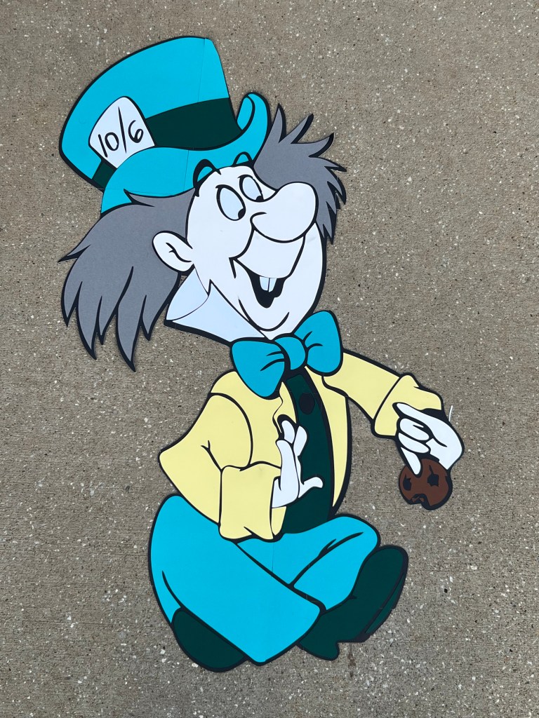 Alice In Wonderland Characters for an event with Kent State PCMA organization. These were created using 12 x 12 and 11 x 17 Cardstock, Glue and tape. The pieces were all sliced and cut using Cricut.