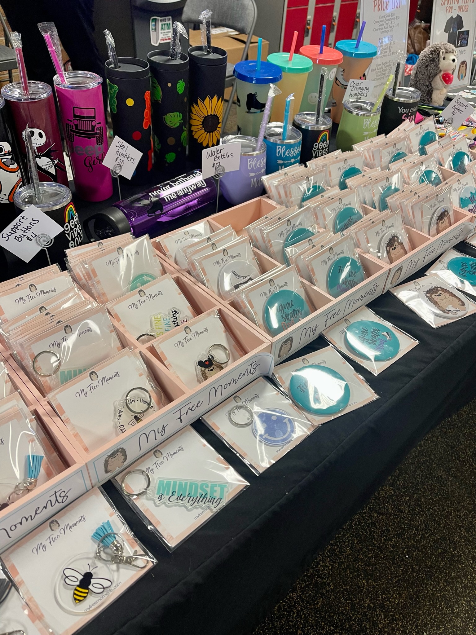While with My Free Moments, We set up at a wide variety of events from Crafts shows to Figure Skating Competitions. Here you will find a wide variety of set up and merchandise.